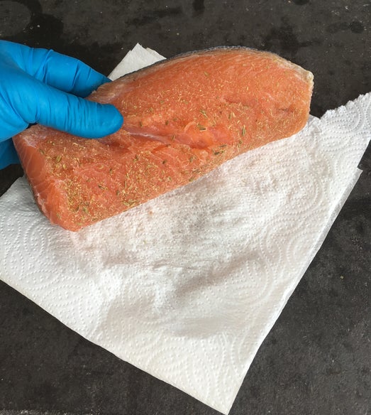 Dep de zalm goed droog. Let op deze moet echt droog zijn!